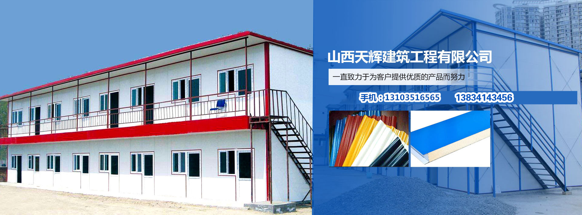 山西天輝建筑工程有限公司是專業(yè)從事彩鋼板生產(chǎn),鋼結(jié)構(gòu)、住人集裝箱、活動房設(shè)計(jì)和專業(yè)安裝、維護(hù)的一家企業(yè),我們銷售的產(chǎn)品引進(jìn)全自動彩鋼夾芯板流水線以銷售多種規(guī)格的彩鋼復(fù)合夾芯板...